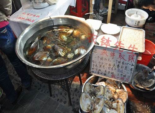 商场里珍珠项链动辄上千,真假难辨。现场从河蚌里取出来的,那还能有假?这就是卖点。
