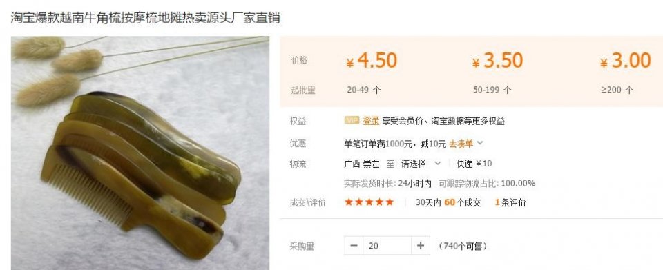 什么牛角梳、檀木梳,卖10块20块。看看成本就知道多赚。
