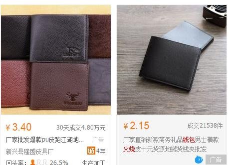熟悉的广告词:"江南皮革厂倒闭了..."一百多的钱包只卖20,成本不到5块。