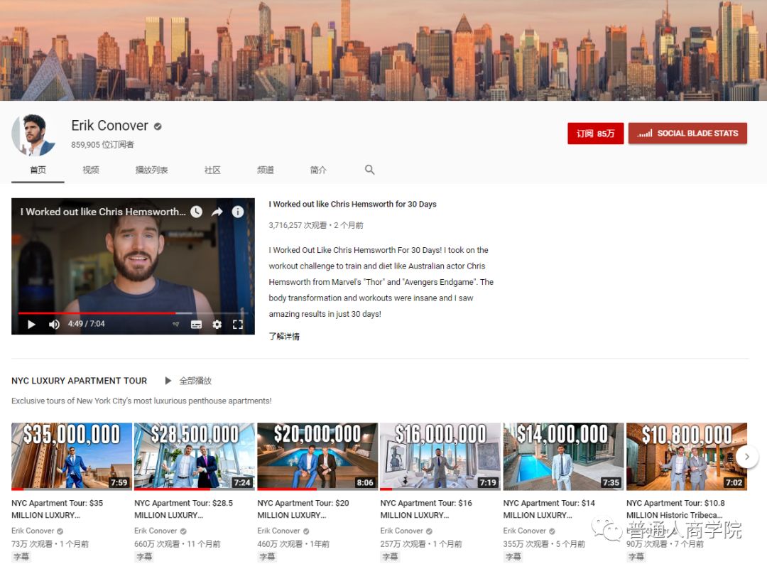 Erik是个住在纽约的视频博主,特别喜欢研究豪宅和旅行。他的视频主要分三类: