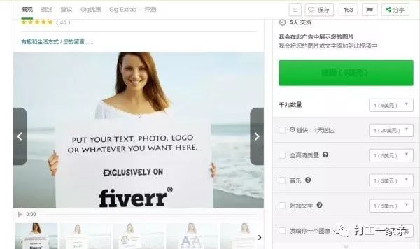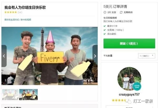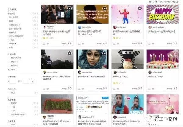 我们可以用国外最大的自由职业平台——fiverr。这个网站相当于咱们国内的猪八戒网,因为服务最低5美元起,所以叫fiverr。上面有很多老外提供举牌服务。你只要百度搜索"fiverr"进入网站,搜索"birthday"就能找到相关服务。