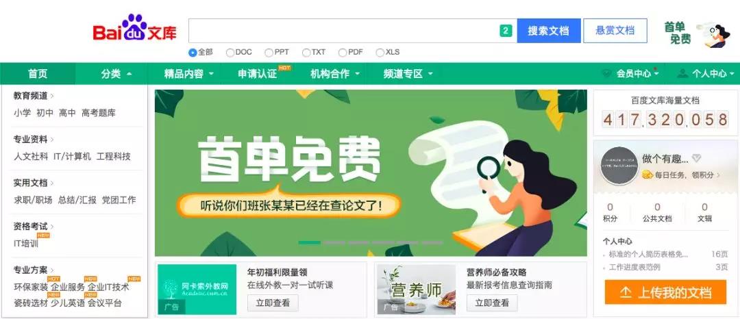 道客巴巴这个平台文档种类很全,从学术论文到公务员考题应有尽有。虽然内容质量不输百度,但流量主要靠自家平台,比起背靠百度搜索的文库还是稍逊一筹。所以老司机们通常都是主攻百度文库,顺手把文档同步到道客巴巴。