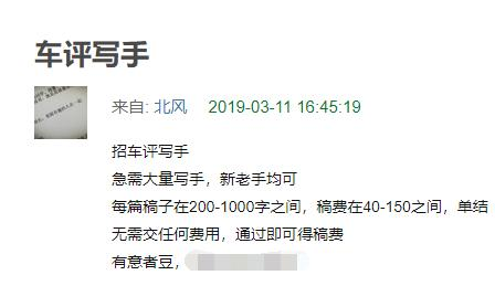 现在国产车越来越牛,4S店为了冲销量都在招水军刷好评。豆瓣小组是车评写手的聚集地,搜"车评兼职"能蹦出一堆招募帖。新手建议从这里起步,最低20块/篇,通常500字给50块。最逗的是很多招聘直接写:"不需要懂车!会抄就行!"